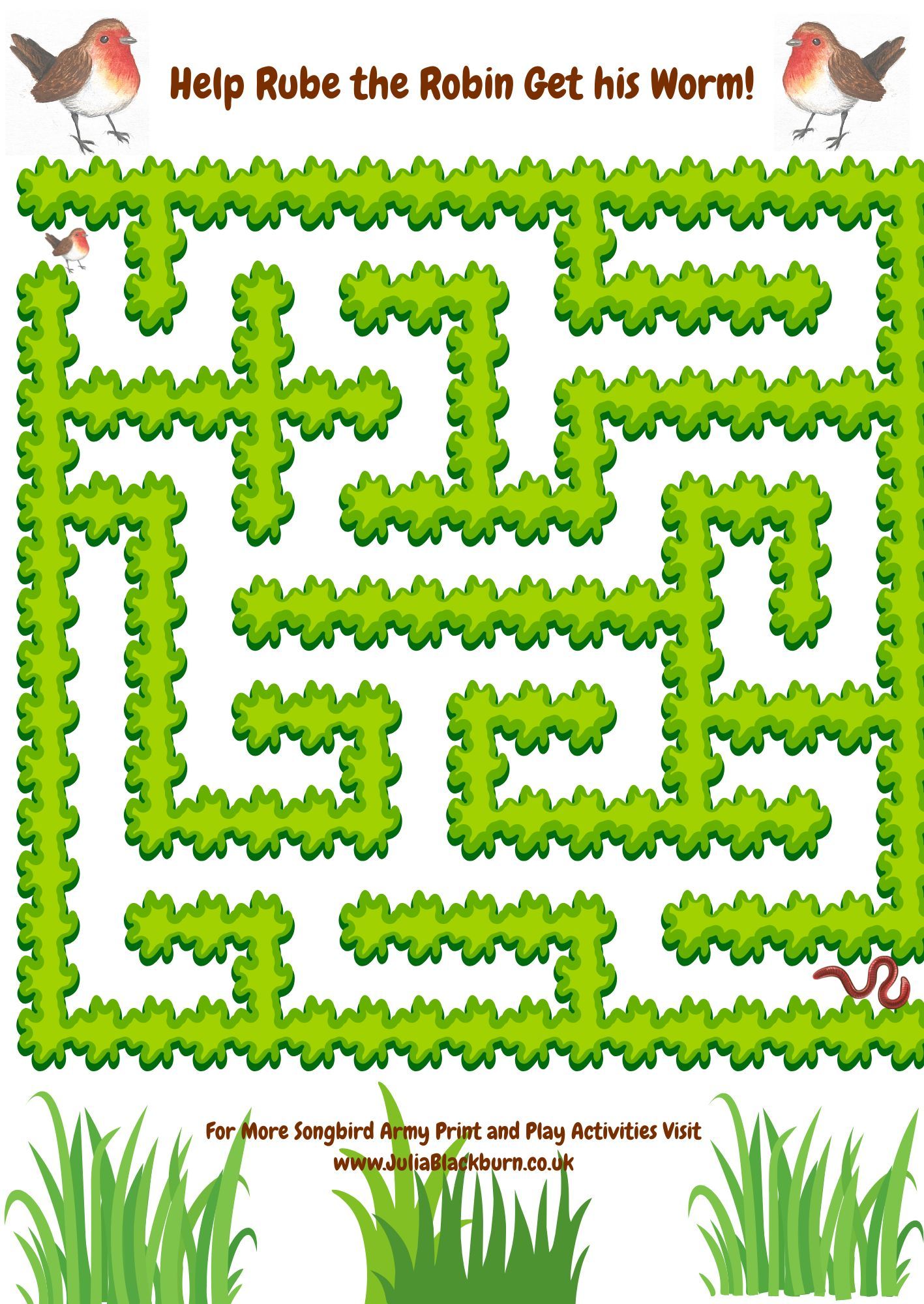 Guide Rube the robin through this fun maze and help him find his worm! A playful activity inspired by The Songbird Army.